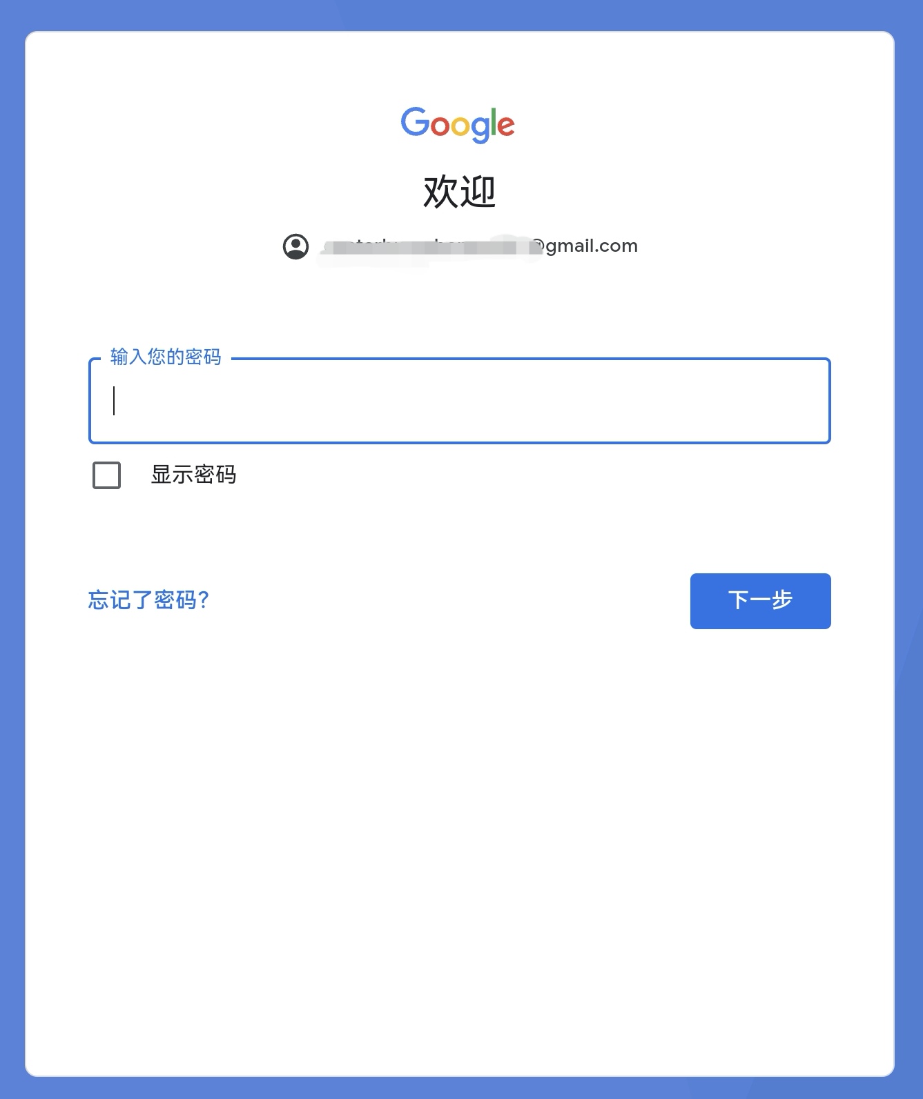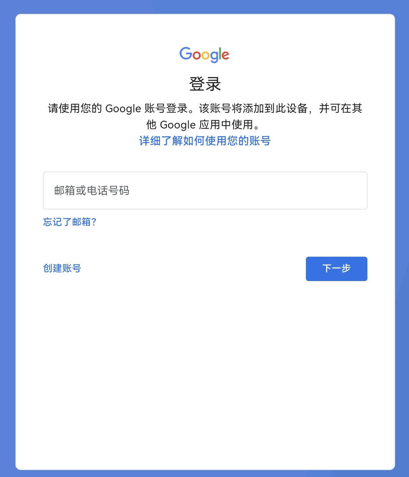 2.来到登录页面,首先填入【Google邮箱】,点“下一步”